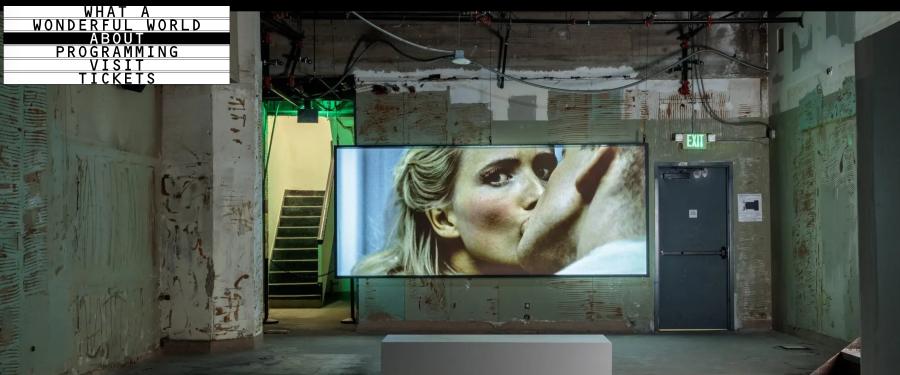 “What a Wonderful World: An Audiovisual Poem,” the first extensive US presentation of the Julia Stoschek Collection, edited by Udo Kittelmann, opened in the legendary Variety Arts Theater, downtown Los Angeles, last month, and I am not above selling out my principles for access to a cool location and free popcorn. If the Nazi glove doesn't fit! My bad, stage two party follower. They were manufacturing not guns after all, but parts for guns. The show’s title is taken from the Louis Armstrong song from 1967; it was used ironically back then as well, but naming anything in this world right now, wonderful feels stone cold. Kittelmann, who likes to refer to himself as an editor, not a curator, says that he has a particular interest in works that are “both magic and tragic”, and doesn’t appear to be ironic. Perhaps he finds a certain complexity in depictions of violence?