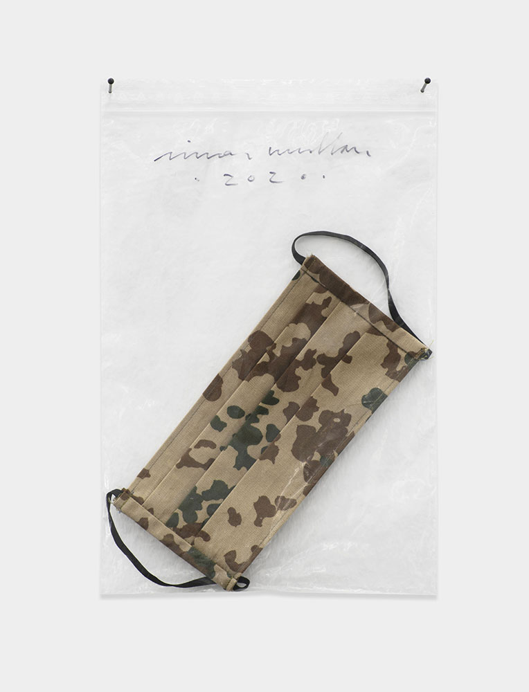 A new textile work by Simon Mullan titled Alles wird gut (Everything Will Be Alright) above the entrance will welcome visitors to the gallery. A familiar German phrase, that would normally get on our nerves, becomes a reassuring message and a statement from the artist. Each letter is hand-cut and sewn on a bold green backdrop that references Mullan’s Irish heritage and historically implies hope, revolution, and brotherhood. The statement encapsulates the enduring position of the artist: working with their hands, in isolation, maintaining a positive attitude in an often volatile market. Printed replicas of Alles wird gut (2020) are available as an edition to hang outside your home or business, allowing the Berlin community to participate in this revolution, a collective call not only to survive but to thrive. Mullan has also produced a signed unlimited edition of face masks available at the gallery for purchase during your visit.
