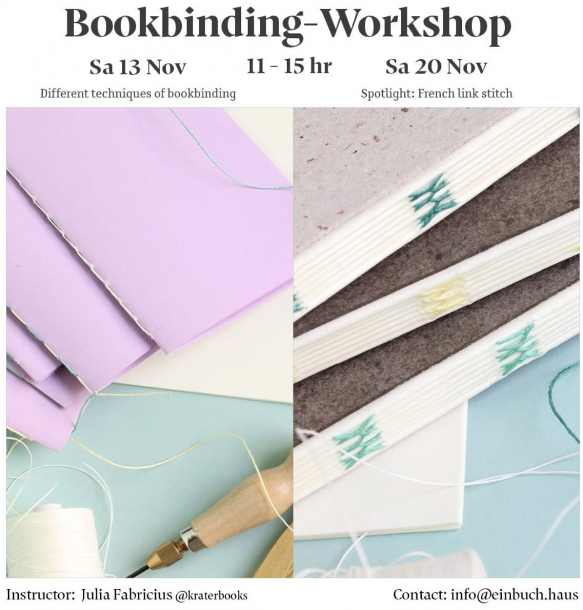 REGISTER NOW for BOOKBINDING WORKSHOP WITH JULIA FABRICIUS Sat 13.Nov + Sat 20.Nov