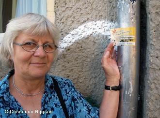 65-year-old retiree Irmela Mensah Schramm "cleans" the streets of Berlin from Hate Stickers (right wing ideology)