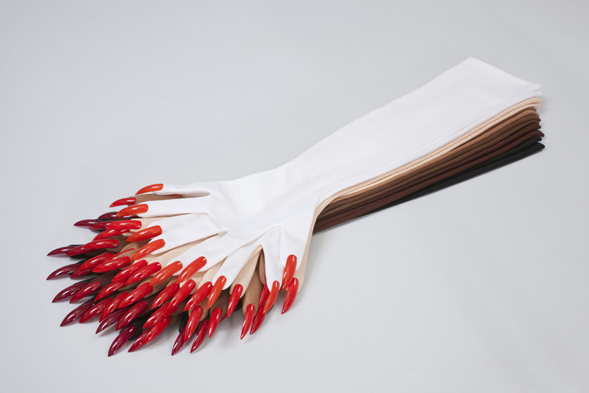 When doing the piece, I was thinking a lot about the work of Lynda Benglis where she is posing naked with a huge dildo betwen her legs. It is a very famous art historical and feminist image from the 70s. In my piece the legs represent the human/female side, and the scissors represent the more cold, business-like, or robot-like approach. Sometimes I feel that I need to harden my surface in order to function in a man's world.