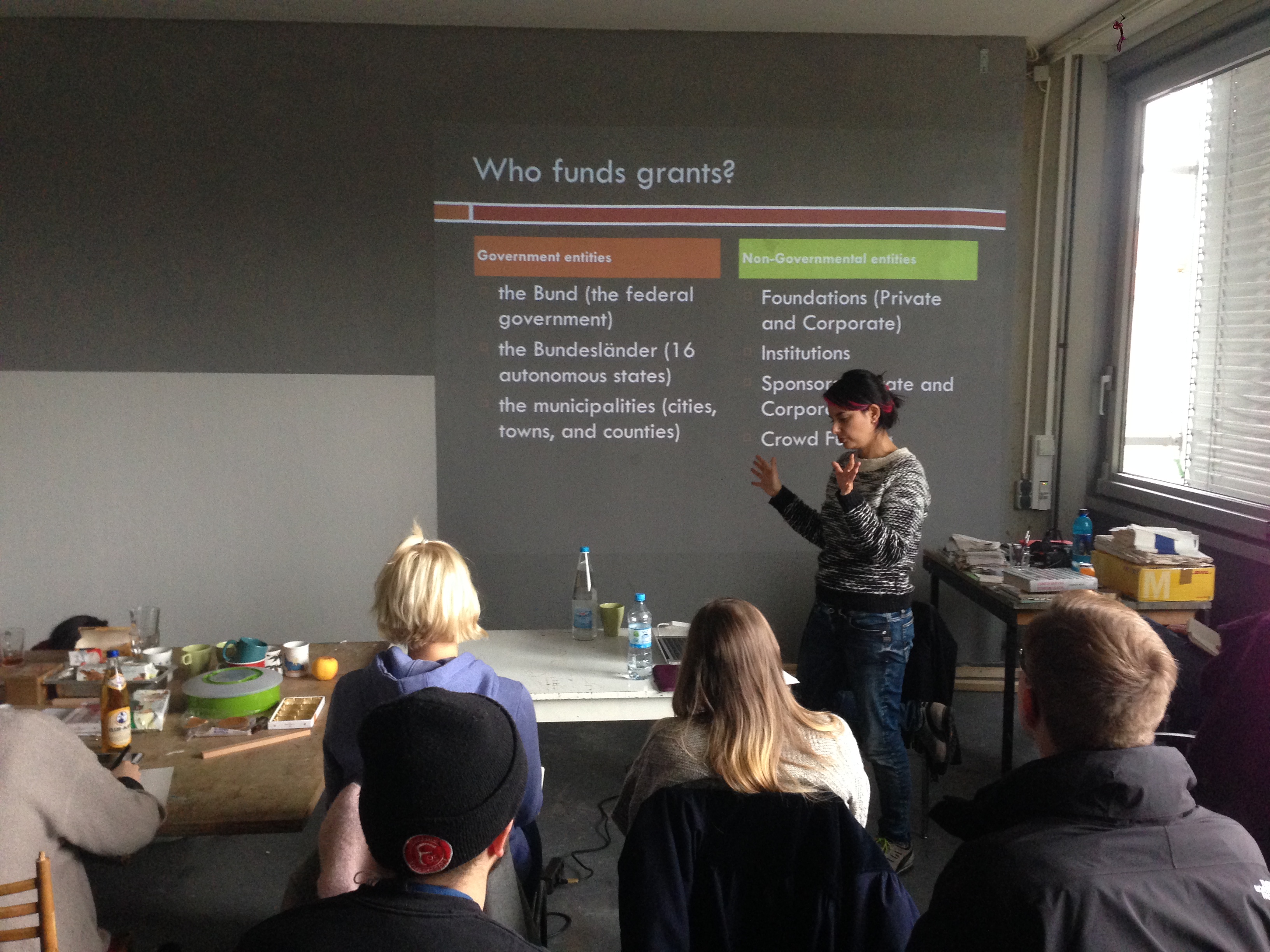 The first day is what I call the Diagnosis Seminar. It is when I talk a lot, share my knowledge about how the institutions are working and what is their mindset, and give strategic grant writing tips. A lot of people have great conceptual ideas but don’t know how to formalize it, how to make it understandable. First day I am teaching how to do that, but also how to get over procrastination. We all know the situations when there is an open call and you don’t want to sit in front of your computer, and I am teaching how to get over that. On the second day, at the “Operation Workshop”, I am teaching budgeting and, within the light of the techniques I have given the day before, we collaboratively work on each others’ project descriptions, which is always very fruitful. The first day is more about theory and the second day is more about practicality. The program has enriched over the past 4 years that I am organising it. During this time, I also learned a lot from giving the workshop series and continued to develop the program. Since I started the Grant Writing Workshops, I have been asked to teach at Helsinki Fine Art Academy, which I am doing now since 2 years. I also teach at Transart Institute since 2012 and got asked by the Art Academy in Mainz and Kassel. I truly enjoy giving this course, it is a lot of fun.