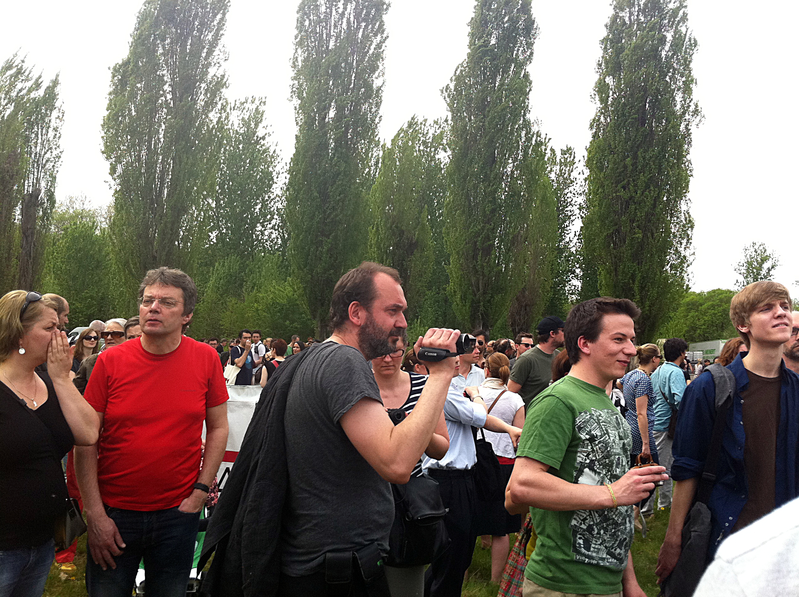 -Or is it that the viewer is not asked to sort through all this material (because he can’t) but reflect it, carry it -as a surface.( In a way taking the place of the canvas in Żmijewski’s video Them?) In this case the viewer's inability to process all this, is pre meditated. The viewer is manipulated into being a part in a (megalomaniac) Über-artwork? The rare sight of an excited Żmijewski at the Berlin War ’45 re-enactment, filming the crowds who were iphoning the hell out of those soldiers, - some poor bastards with fake blood on their faces – made me feel like that. This actually does kind of work.