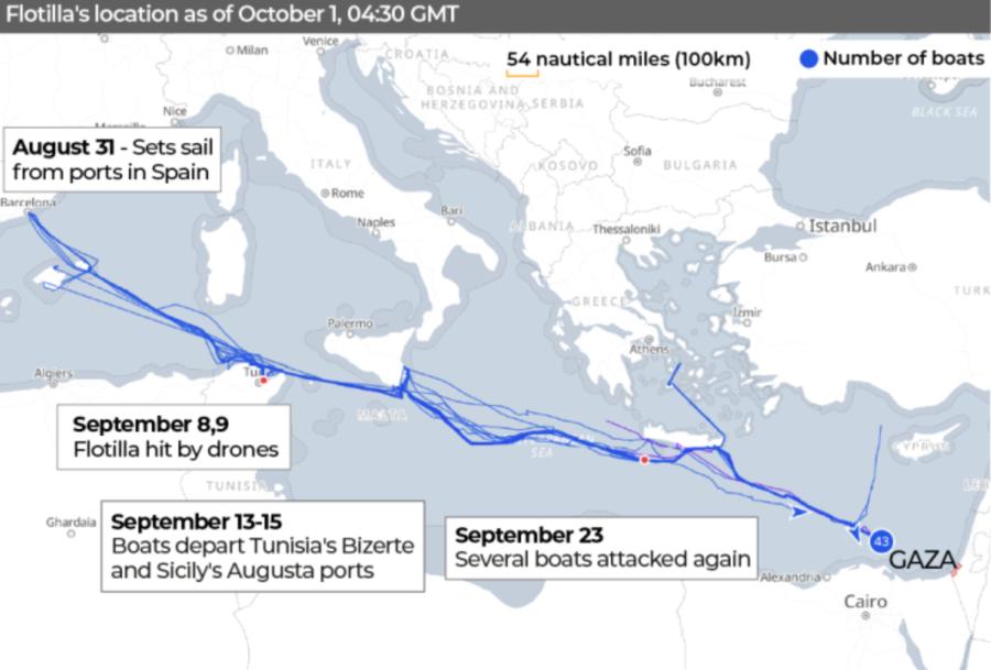 And I think the Global Sumud Flotilla did exactly that. It visualized for those of us who care to look how CLOSE all these countries are to Gaza. The activists repeated the words “build a humanitarian corridor at sea,” and every time I heard it, I could breathe again. Greece, Cyprus, Turkey, and Egypt are a breath away. A breath! Italy, Spain, and the rest of Europe are not very far behind, and there is nothing, nothing standing in the way of us helping the starving Palestinian population, nothing but water.