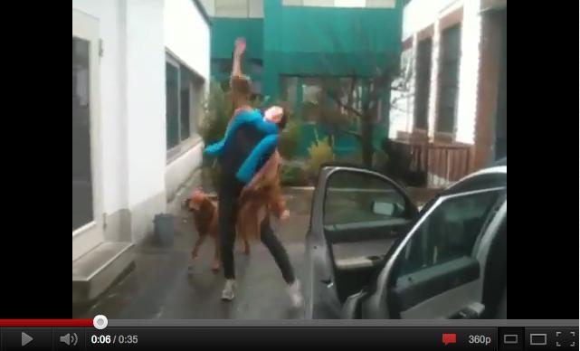 I watched the video in awe, I am really surprised it has not been on everyone's facebook page for days. This is a punk move! FROM A GALLERIST! The car is parked with the doors open, Giti jumps around, the dog also kind of moves back and forth, I kept thinking she will get in the car and drive off screen, but she doesn't, she kind of stops, and out breath, makes a little bow.