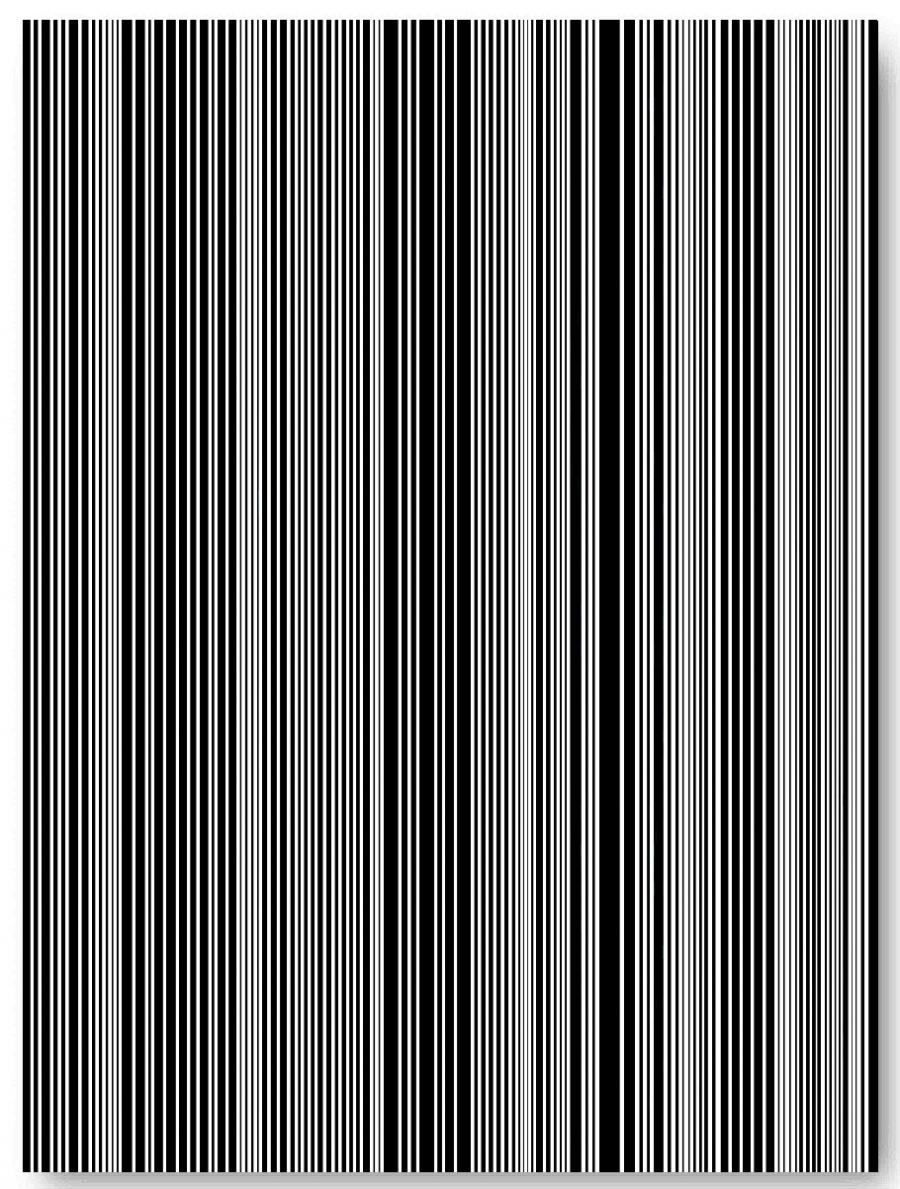 Klaus Jörres is a Berlin’s art nightlife darling, his work on the other hand, shown here in all its austere sharpness, has absolutely no desire to please. Your eyes hurt and you get a bit dizzy by looking. Five big scale black and white canvases, hang close to each other and leave the rest of the room empty. The first is a grid of black and white horizontal /vertical stripes, the next three vary in different degrees of “abstraction and addition“ as the artist calls it (denser grid, no horizontal or vertical lines, overlap of different grids). The fifth canvas is identical as the first. I run into this very funny video of a younger Jörres lying in an empty white box talking (or not talking) for three minutes about how art is entertainment and then it hit me. Jörres working tool is exactly that, the absence of meaning, the absence of entertainment, the absence of color, historical reference or any kind of means of understanding and classification.