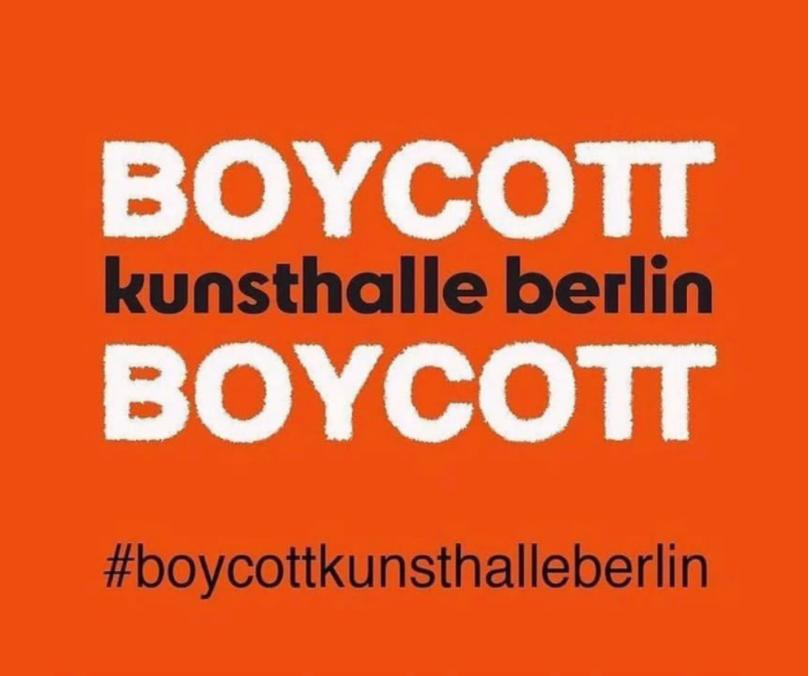 “Joining the boycott would mean that you elect to avoid visiting the ‘Kunsthalle Berlin,' exhibiting at the ‘Kunsthalle Berlin,’ or otherwise patronising/supporting a highly dubious operation that can only serve to further erode the culture of the city of Berlin.”