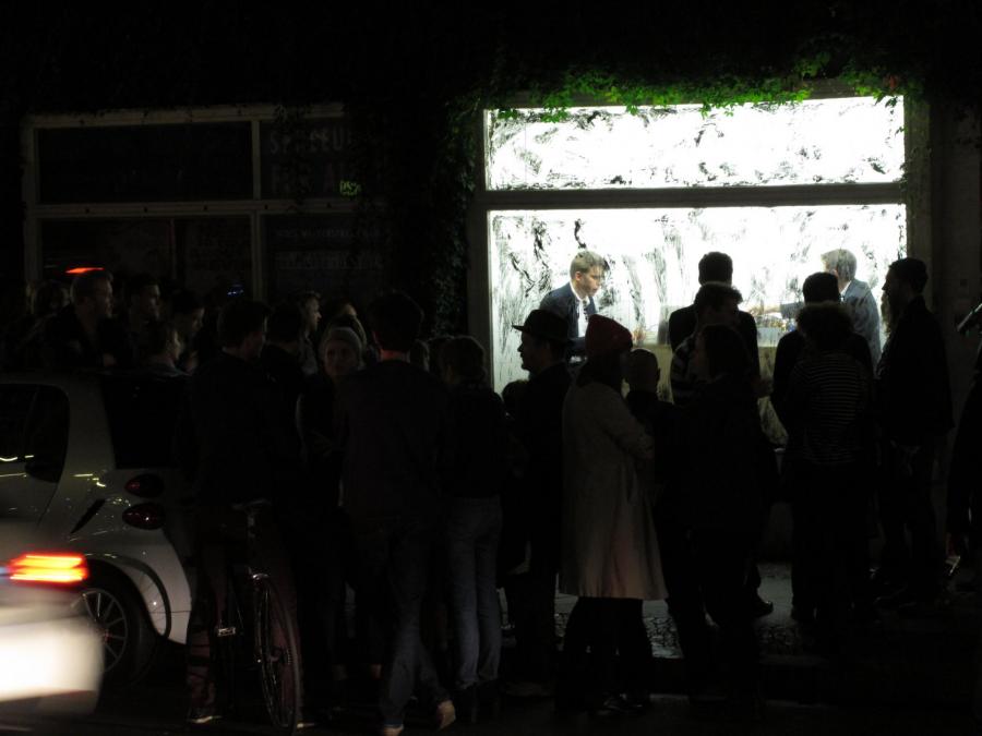 For the people passing by Oranienstrasse with all its attractions (restaurants, bars and shops, etc.) the vitrine works like a gap, that interferes which what you normally would expect, visually. Depending on how much an installation in SOX focus´ on “presence“ in the street, it often also draws the attention of people that do not usually affiliate with the arts. Also the projects can be seen 24 hours which means they should work under many different circumstances - such as light, temperature, weather etc..But part of the "alternative access" also mean that it is freezing on cold openings during the winter...
