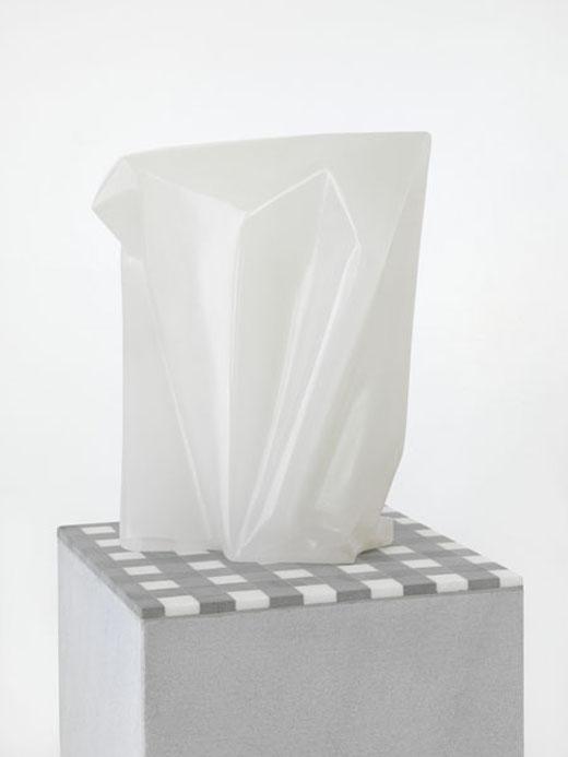 What I feel are the most intriguing objects are the more recent abstract sculptures. These objects that either hang on the wall or rest on pedestals (solid marble pedestals to be exact) take the form of a cloth that has been draped over paintings and sculptures. In fact there is nothing hidden, the objects are solid all the way through. Also, the text piece in the back corner of the installation nicely ties together the ideas behind the work; it is a piece from the quotation “seeing things that are too big to see.” The text is too big for the viewer to read, and Blank's work embodies things that are too big to see, such as simultaneous pieces of the world’s landscape, the history of the materials, and the history of art.