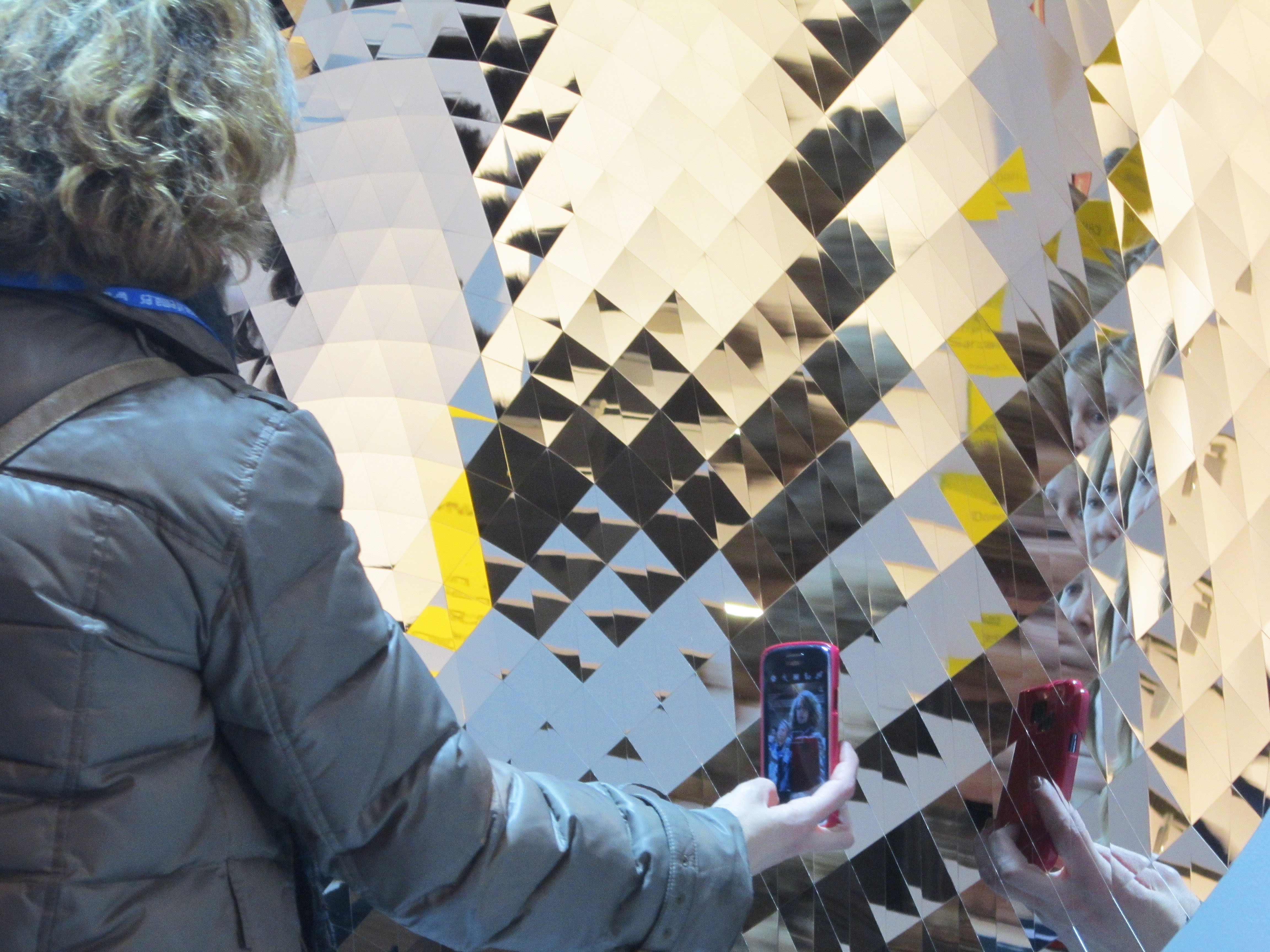 “This seems like an eye-catcher, let's go see what it is about” - I overheard a middle aged couple of collectors while contemplating the hordes of people armed with phones staring in front of some bling bling art piece. They are taking a selfie of their reflection on an Anish Kapoor. Crowd pleaser factor is pretty high at Lisson Gallery.