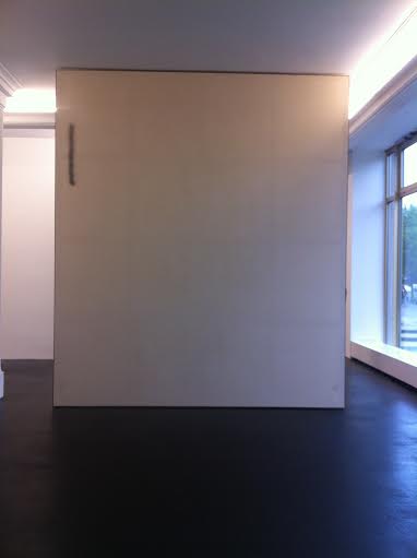 I was also giddy, as I hope is normal for a novice gallery weekender, about all the glamourous aspects of the entire operation. We saw what must of been a few of the über-elites arriving in limos, but to be honest, I was ecstatic about the amount of cabs I took on Friday. My measly student budget has probably only afforded me four cab rides in the last year, and we whisked around Berlin in almost double that number on opening night. First up on the wild cab ride was Peres Projects showing David Ostrowski’s (in)famously minimal paintings. I assume that the blank canvases are meant to be provocative in a way, but to be honest I was a bit underwhelmed. Other notable stops along the way included Felix Kiessling’s delicately balanced rock installation at alexander levy, a valiant attempt to see the performance at Isabella Bortolozzi (line skipping was another Bpigs/Despina perk I was treated too), and a cold, streamlined Liam Gillick show at Esther Schipper, which fused sleek metal sculptures with emotionally jaunting wall texts.