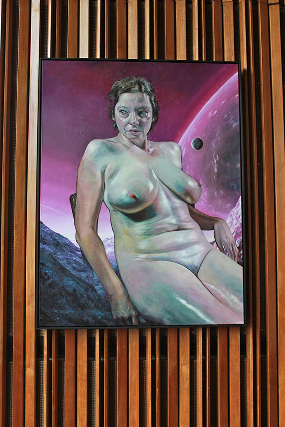 Christopher: Some artists came and saw the space before. All of the spaces in the building are so different that you could sort of take the artist and fit them to the character of the space that they are showing in. The former youth club has very strange looking rooms that are more like warehouses, then you have got the formal lounge. Fiona James did a rub in of one of the murals outside and is displaying that piece in the foyer. So she directly reacted to the building.
