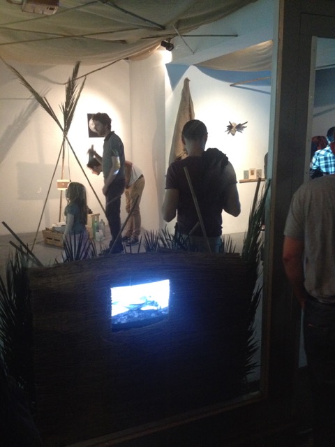 Tucked away from the piratical screams of Kottbusser Tor, Vesselroom Project boasts a perfect vestige for creative minds. Montiel-Soto and Garcia collaborate constructing an installation that visually fits with the Treasure Island theme one finds themselves in at Kotti. Video projections flanking sculptural installation filled the cozy space and people beat the rain to come out and experience the Point of No Return, transitioning through the moments between time. Complete with frog fountain, astrological iconography, and grass, there was a tiki torch/lost in paradise vibe to the whole thing.