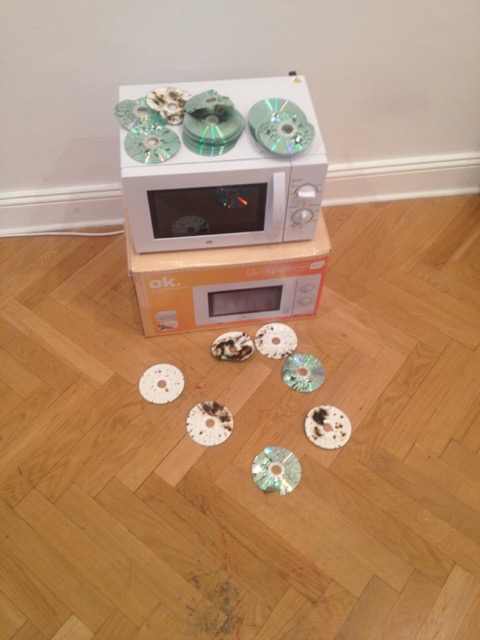 Getting buzzed into Import Projects always makes you feel so important, as the Charlottenburg Altbau stairwell is impressive, causing you to look at your shoes for some reason. Upstairs in the gallery, Kneale read from his large iphone, a technological survey of the problems and interactions humanity has with ‘the digital’. The crowd made themselves at home sitting about the floor like it was a frat house. During his narration, Kneale microwaved CD’s, cooking data as it were. A possible concentration of information. As an inauguration to the group show Abjects, Kneale has published instructions for ‘Free Software’ performances that question authenticity and authorship of on and offline imagery and data.