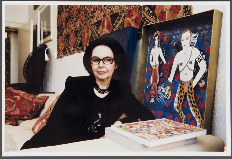 Her work is unique and easily recognizable – bold graphic paintings, objects, and books, rich in splendour, humour and the erotic, inspired by cultural history and folk art, as well as the places and the people she encountered in her many travels. As a young woman she had the need to change the scenery often and drastically, and all of that is evident in the way her artistic expression progressed.