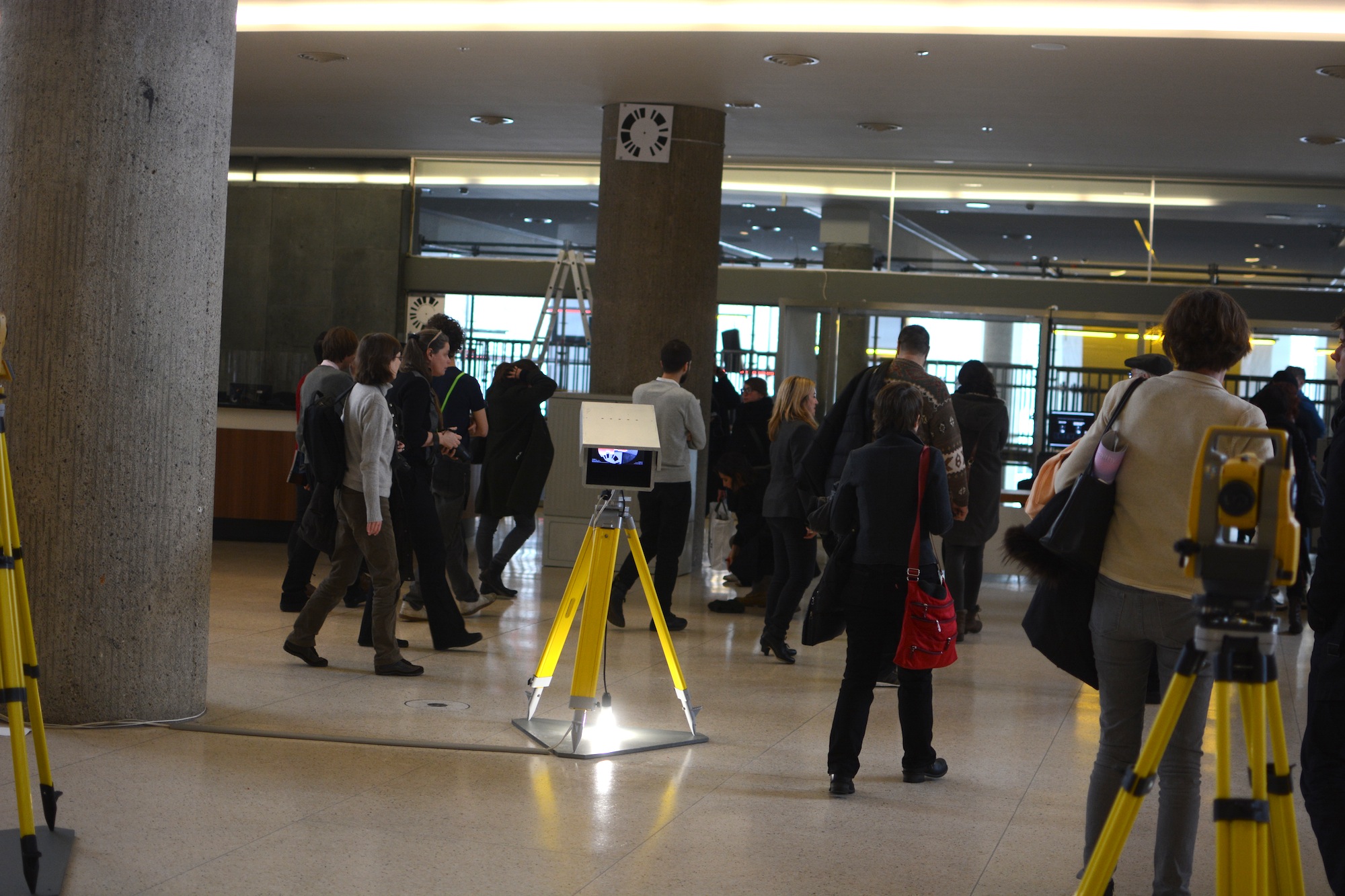 The team let us loose to explore the main installation by resident artists Jamie Allen and David Gauthier after a short talk about their art-based surveillance system that will be watching your every move in HKW. Apparently, the talk was not short enough - an impatient attendee announced that "[she] didn't have all day". Journalists these days!