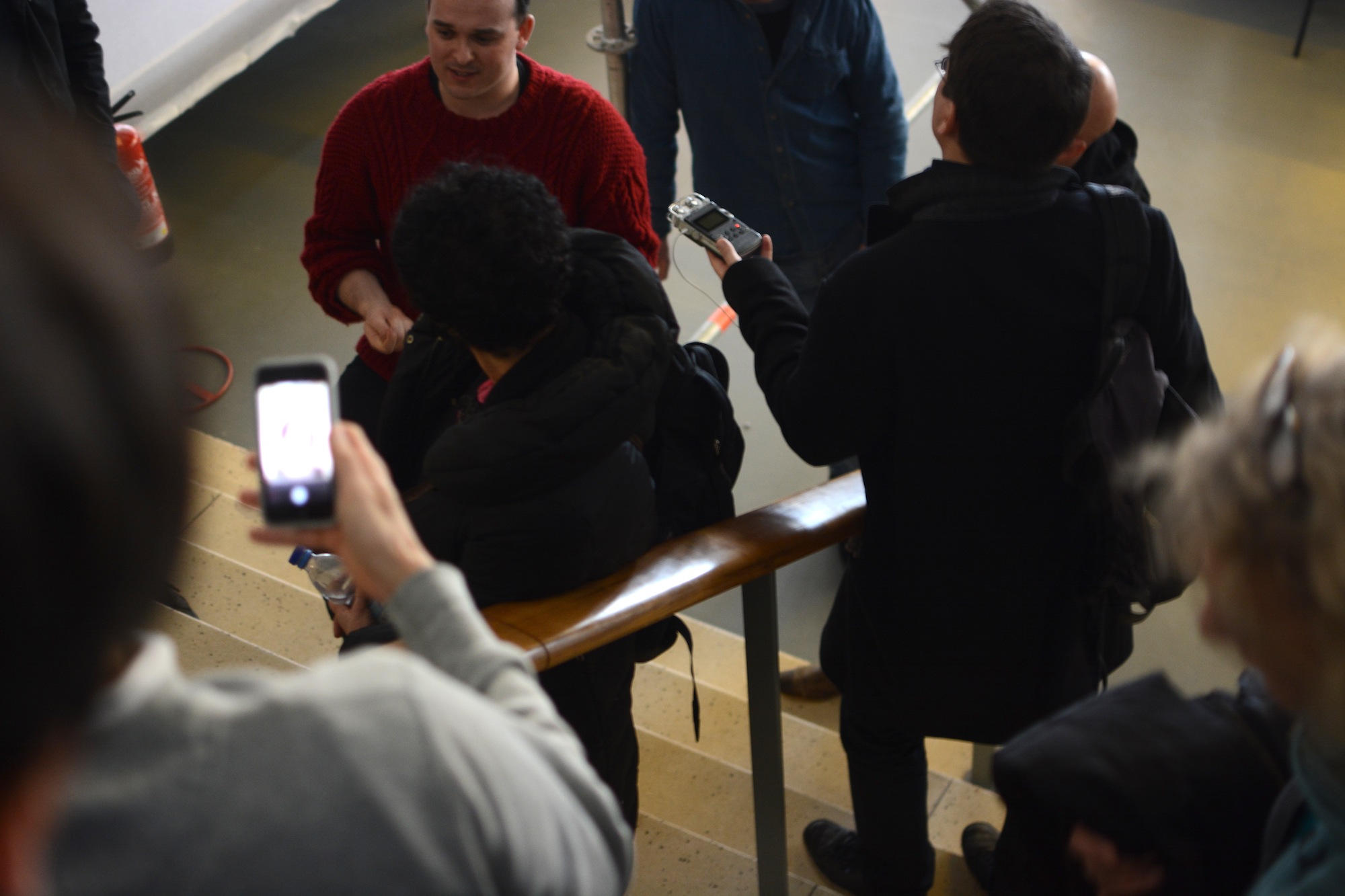 We gathered in Haus der Kulturen der Welt a bit before noon and arranged ourselves on long benches facing a stage. Gansing and Tatiana Bazzichelli took to the front of the crowd and introduced transmediale 2014, explaining the idea behind this year's selection of work, the festival in general, and fielding questions as needed. Knowledgeable and eloquent, the only question left unanswered was why there were no microphones - with cutting-edge experts and experimenters in the field of technology and new media at hand. It was surprising that Gansing and Bazzichelli had to shout over the sound of the hall being assembled in order to be heard.