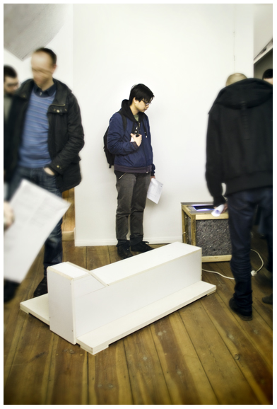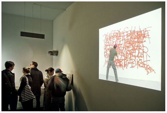 The paradox of seeing what one doesn’t see has become a keynote of the recent exhibition at Grimmuseum – “x o” (13.04 – 13.05.2012). The title and concept of the show refers to the “blind spot” - specific obscuration of visual field located where optic nerve leaves eye. There are no rods or cones so the brain cannot process the image because it is not being sent. The very fact that we can use our minds to conceive something refers to the hypothesis that our brain easily holds the objects under scrutiny.