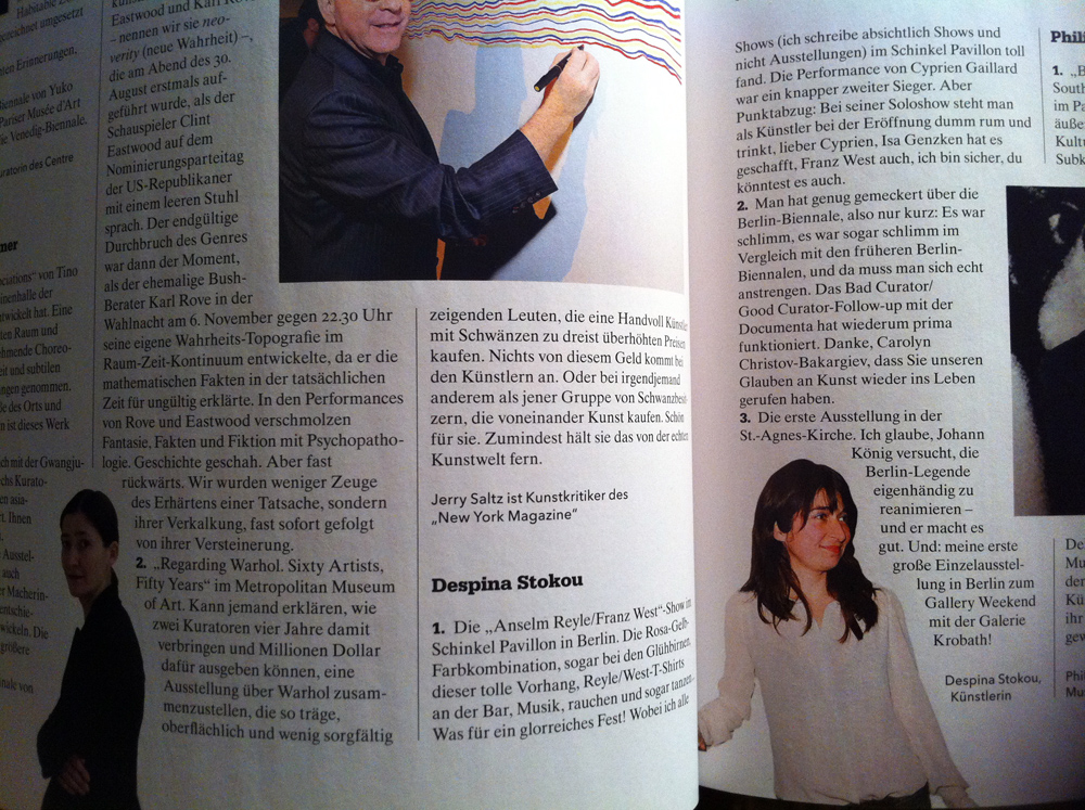 Despina in Monopol talking about the Highlights and the Lowlights for 2012 and what she is looking forward in 2013