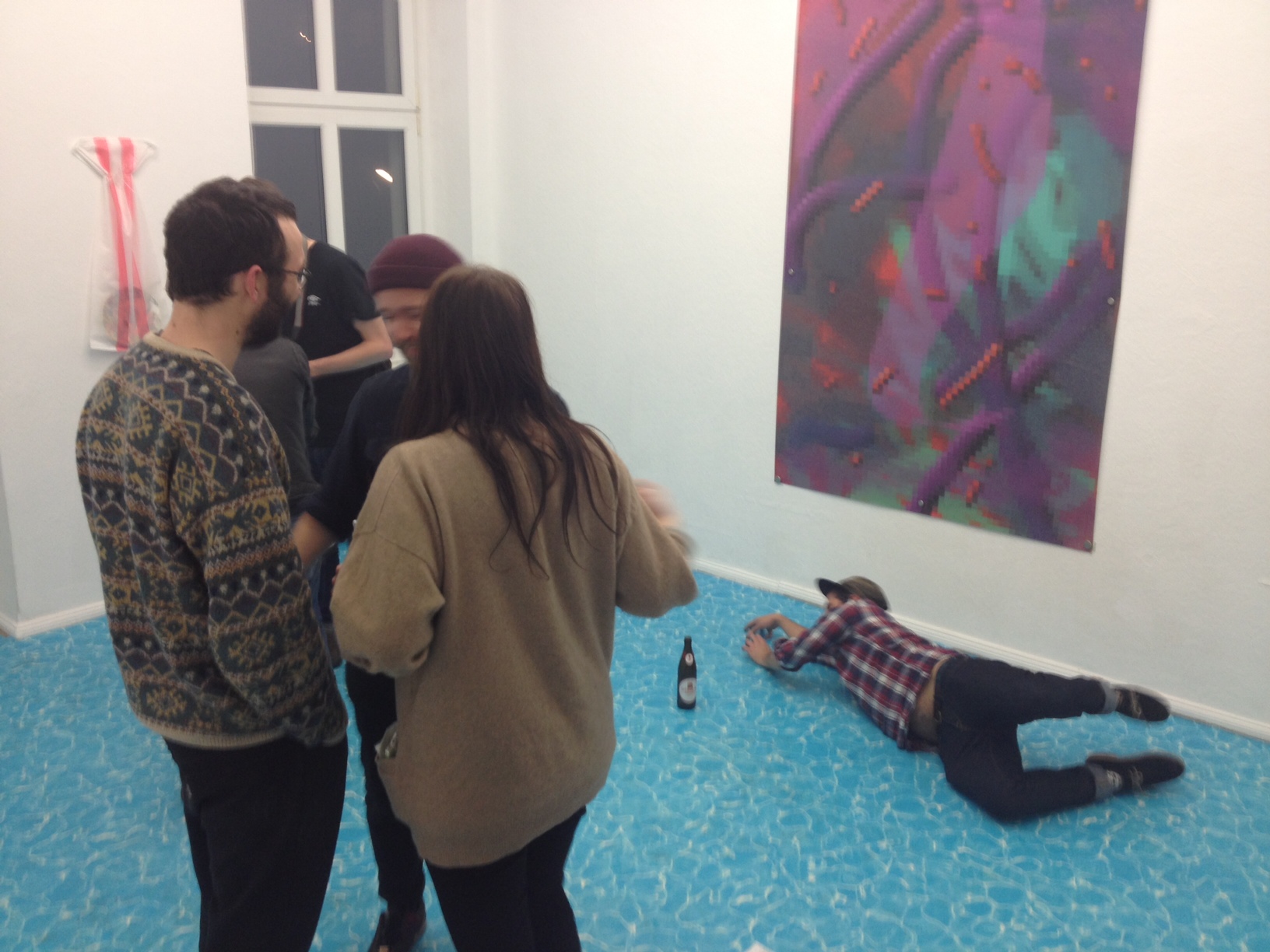 For it’s second workout, The Gym hosted an exhibition of new work by Berlin based painter Tomasz Kobialka. The atmosphere in this living room-turned-gallery space keeps getting better every time I visit it. The Gym had installed a ‘pool’ covering the floor with water-patterned vinyl, giving the visitor a Jesus complex (somewhat fitting for any critics in attendance). +19 for free beer and nice smiles. (C)