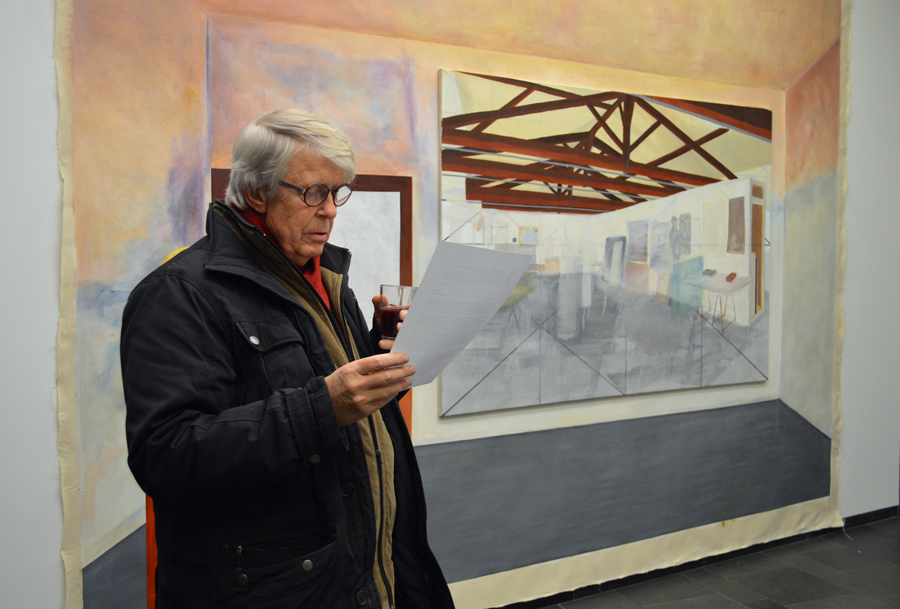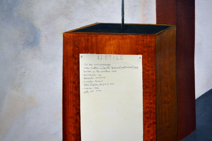 This one-wall-show featured only one painting (well, technically two) that is supposed to be at the same time an art space squatting another. There was so much going on in this one piece that it didn't feel too minimal or obscure to have an opening just for that, although it easily might have been empty and sad.