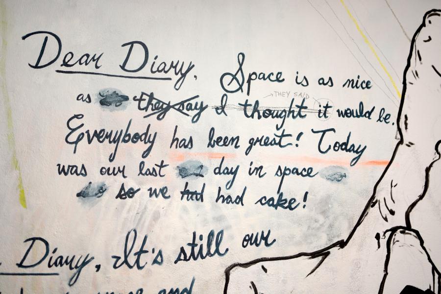 “OH HIMMEL, STRAHLENDER AZUR…” let me live out my childhood fantasy—in addition to installation, video, and other object-based art, the show featured paintings on the walls themselves, complete with astronauts and sharks! +56 for making Walt Disney proud.