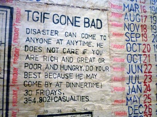 +15 for the affect of the films…The content was so heavy, I tried to go dancing after but couldn’t because they weighed me down too much. How can one enjoy disco when there is a war going on? So maybe it’s more a +15 for Farocki and -15 for my Friday night, but I’ll get over it. So George Widener was right, my TGIF went bad.