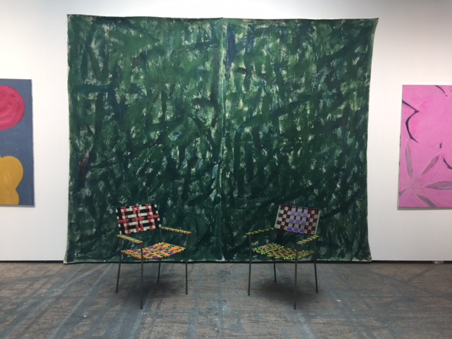 Painting by Tamuna Sirbiladze and chairs from Franz West at Charim Galerie during Art Berlin Fair.