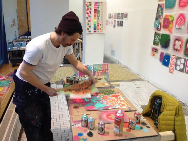 This weekend Schau Fenster turned into an interactive exhibition / studio space. A group of artists worked for six hours with one chair, a tripod and paint.