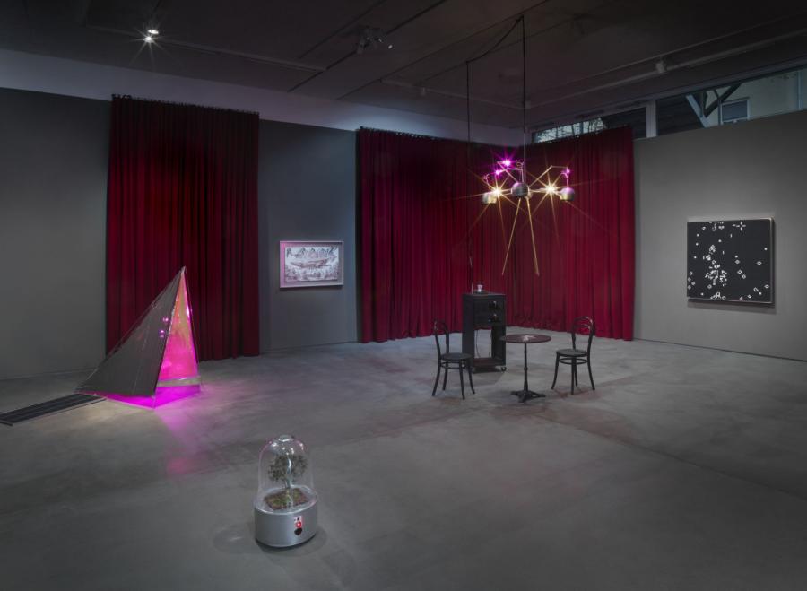 Andreas Greiner limns a complex and multifaceted portrait of artificial intelligence in his layered and technically elaborate exhibition with a theatrical air. Greiner leaves the decision on how to engage with it to us. We can use this exhibition as a literal stage and interact with non-human actors that populate it. Or we choose to see it as a game and experimental arrangement and approach it in the role of silent observers. Either way, Game of Life will unsettle our certainties about what we regard as animate and inanimate, nature and technology, or speaker and spectator, introducing us to entities whose actions, interactions, and thinking challenge us.