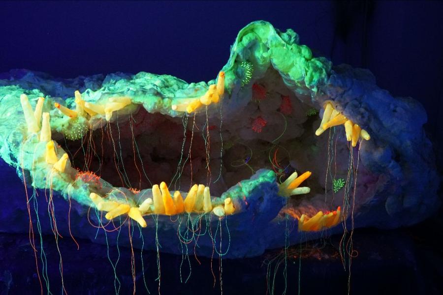 artist: Anne Duk Hee Jordan • curator: Pauline Doutreluingne • sound design: Perera Elsewhere • set design and video editing: Simone Serlenga • textile design: Yoon Kye Hee • confection: Hidir Celic • artist assistance: Emilia Urbanek, Yen Chun Lin, Boris Deben • technical supervisor: Uwe Rommel • curatorial assistance: Anneli von Klitzing • graphic design: Andrea Macias-Yañez • authors: Inka Gressel, Susanne Weiß • robotics: Andreas Marckscheffel • workshops: Ann-Marie von Löw • translation: Lucy Powell • exhibition documentation: Kun Liang • mycelium chair design: Luca Bendandi • exhibition photography: JJ Falsetta • Into the Wild, in Kollaboration mit Herbarium Leipzig
