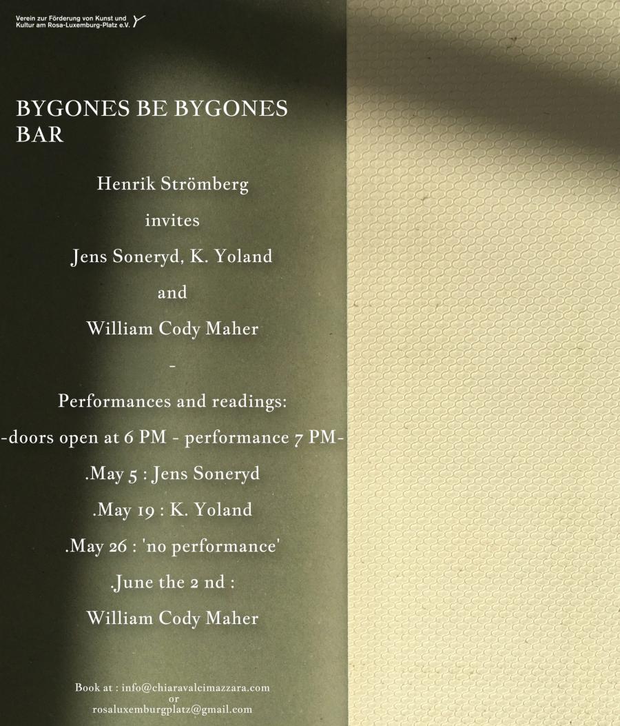 A program of performances and readings will take place on the stage of a functioning bar counter structure: the “Bygones be Bygones Bar” conceived and realised by the artist for the project. Conversations will be initiated through readings of poetry, philosophy and talks, while the ice cubes are melting in the glasses, the talk will be about the same phenomenon at the poles, about viruses and microorganisms, about memory and loss, about surveillance and much more.