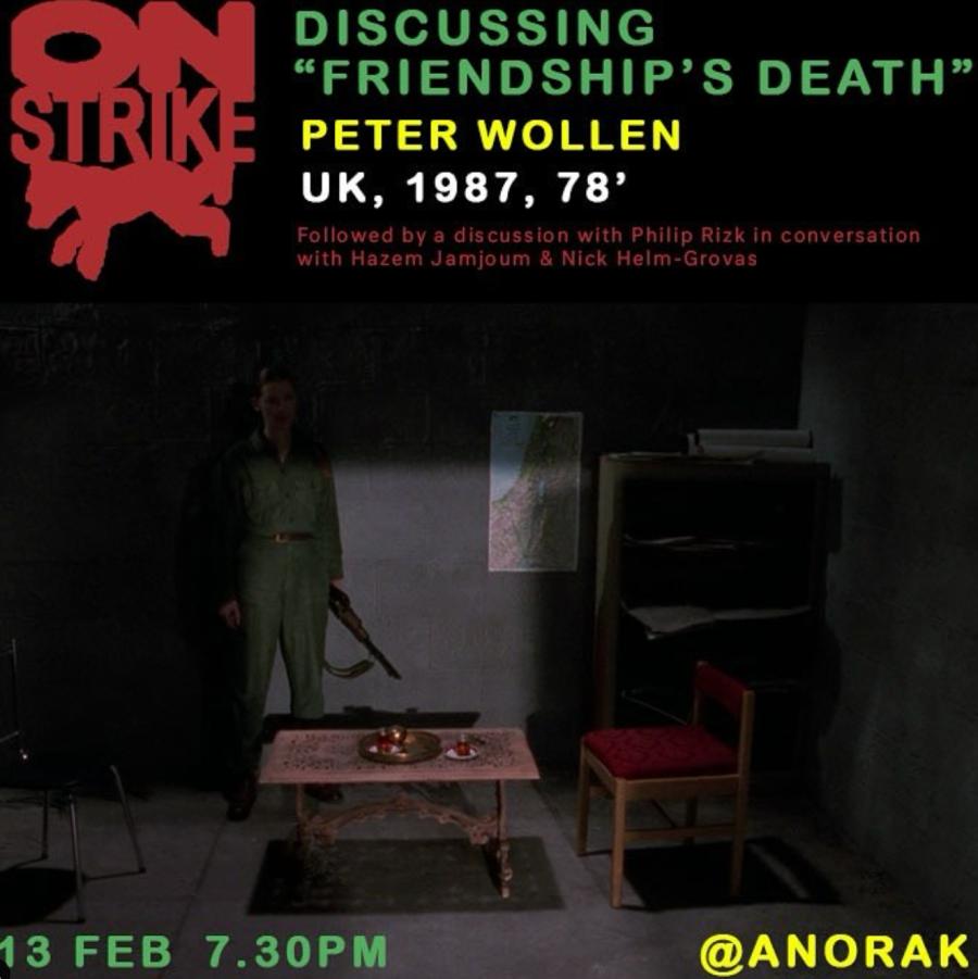 ❊ Peter Wollen is no longer alive and we have learned that screening Friendship’s Death in a festival which stands for genocidal tendencies would not have aligned with his politics
