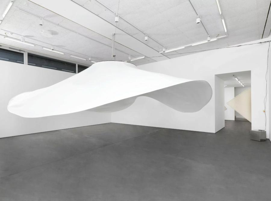 In the second gallery space, Düsing presents a new project titled Picknick (2024), an installation featuring a series of parasols both inside and outside the gallery. These versatile structures can create passages, hideouts, roofs, and tents, offering endless possibilities. The parasols symbolize responsive and adaptable architecture that speaks to the transient and mutable nature of space.