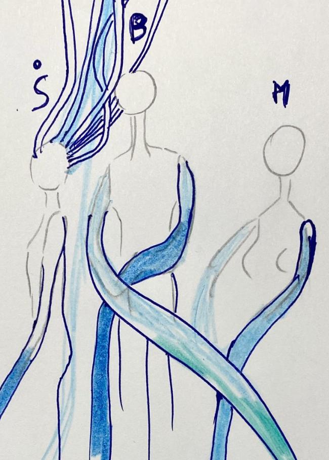 Three performers move within this textile landscape, partly merged with the sculptures that resemble extended roots or anthropomorphic limbs. Their gestures are slow and organic, resembling the way trees or plants stretch toward light — or toward one another. The bodies do not touch, but they strive to. The entire performance is about longing: for touch, for understanding, for human closeness.