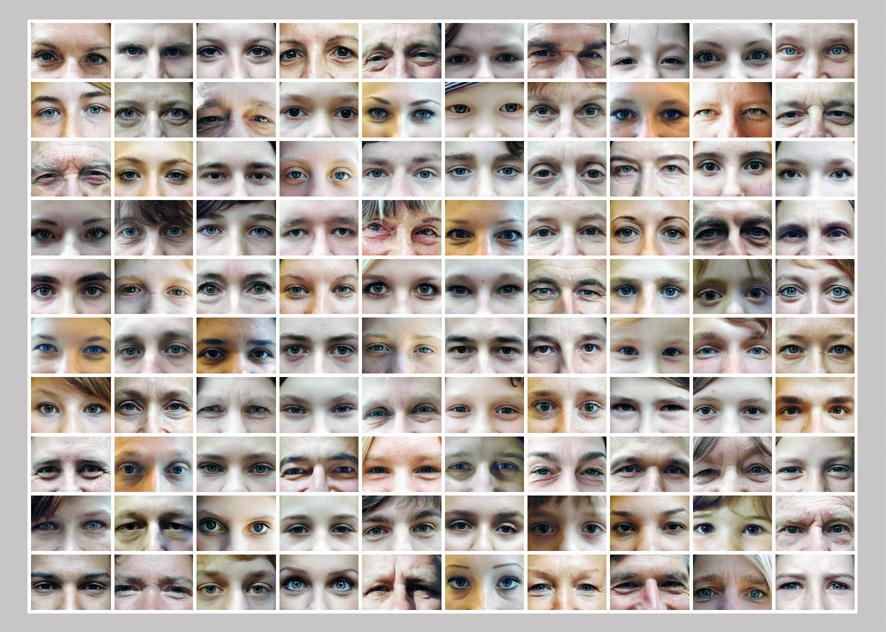 100 lights and counting - a montage of 144 pairs of eyes gaze down at the viewer and are mirrored below. To see and to be seen; a game of hide and seek; eagle eyed observations and yet no recognition? In her new photographic works and installations, Karen Linnenkohl examines various aspects of the visual spectrum.