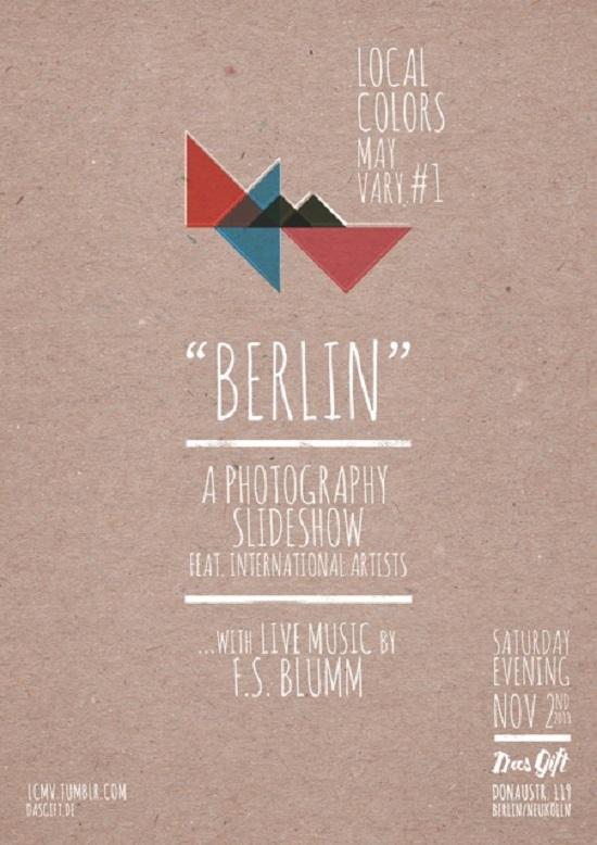 Local Colors May Vary (LCMV) is a series of curated slideshows, combining contemporary fine-art photography and live music by international artists – with the aim of creating a diverse picture of the respective theme and promoting the work of emerging and talented photographers & musicians.