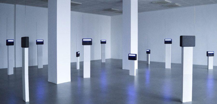 They float upon delicate pedestals as if on radio waves through the space. The audio fragments emitted from the radios are based on search results algorithms found in analog FM radio frequencies in the area. The search terms were predefined by the artist. They refer to political entities, emotions as well as perception and reflect life in today's society. Like Facebook’s algorithms, they select information to be heard on the radios in real time. Audio excerpts from various broadcasts come together simultaneously in the exhibition and create a spatial installation of sound. Sentence fragments from different sources form new meanings together. The installations of Radiosands are always site-specific, because the events taking place in the surroundings are transmitted via radio into the exhibition space.