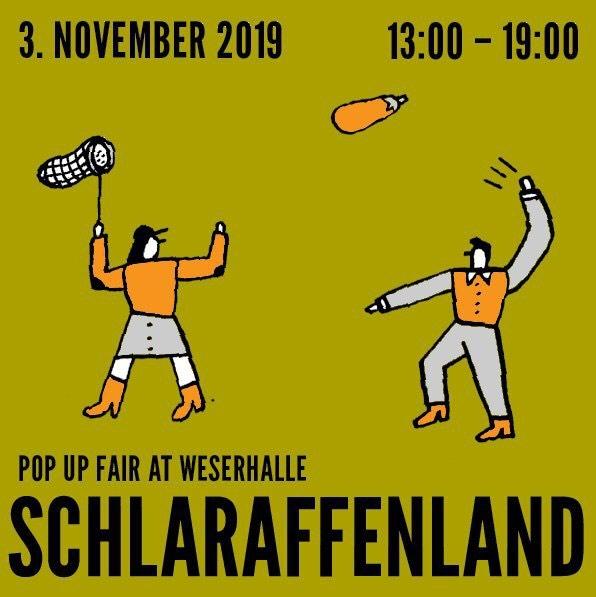 On the 1st Sunday of every month, Weserhalle presents Schlaraffenland, a super nice pop up fair, making available various works from designers, independent publishers, illustrators and artists including posters, prints, books, zines, key-rings, key-things, mugs and knickers and more. We are excited to present our 3rd fair this Sunday! More artists to be announced.