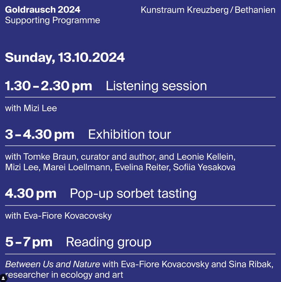 17.00 – 19.00: Reading group with Eva-Fiore Kovacovsky (Goldrausch 2024) and Sina Ribak, researcher in ecology and art