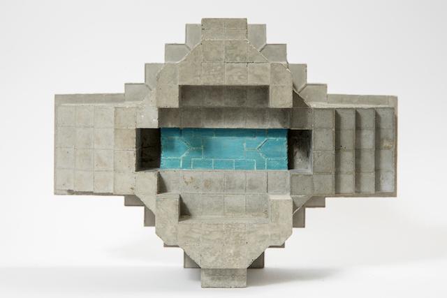 The unfinished and the occasional madness of architectural language find a home in Susanne Piotter’s sculptures and prints. The Berlin artist, with a background in graphic and media design and a degree in stage design from the Maastricht Art Academy, creates exciting objects and imagery steeped in references to architecture. Her small-format concrete sculptures from the “Artefacts” series consist of individually cast parts, mostly two or three elements, which the artist combines together following the principle of trial and error. Piotter discovers spatial solutions by trying out possible combinations. She is guided by her fascination for brutalist buildings and the unfinished. By combining solid parts and filigree transitions, she sometimes creates an impression of flawedness in her objects, which resemble building site ruins; they were never finished and now they are. Many of the sculptures can be set up in at least two different ways, providing multiple perspectives on the object, made possible by the object itself. The partial colour design of the sculptures plays with the visible and the invisible, and illustrates the multi-dimensionality of the work.