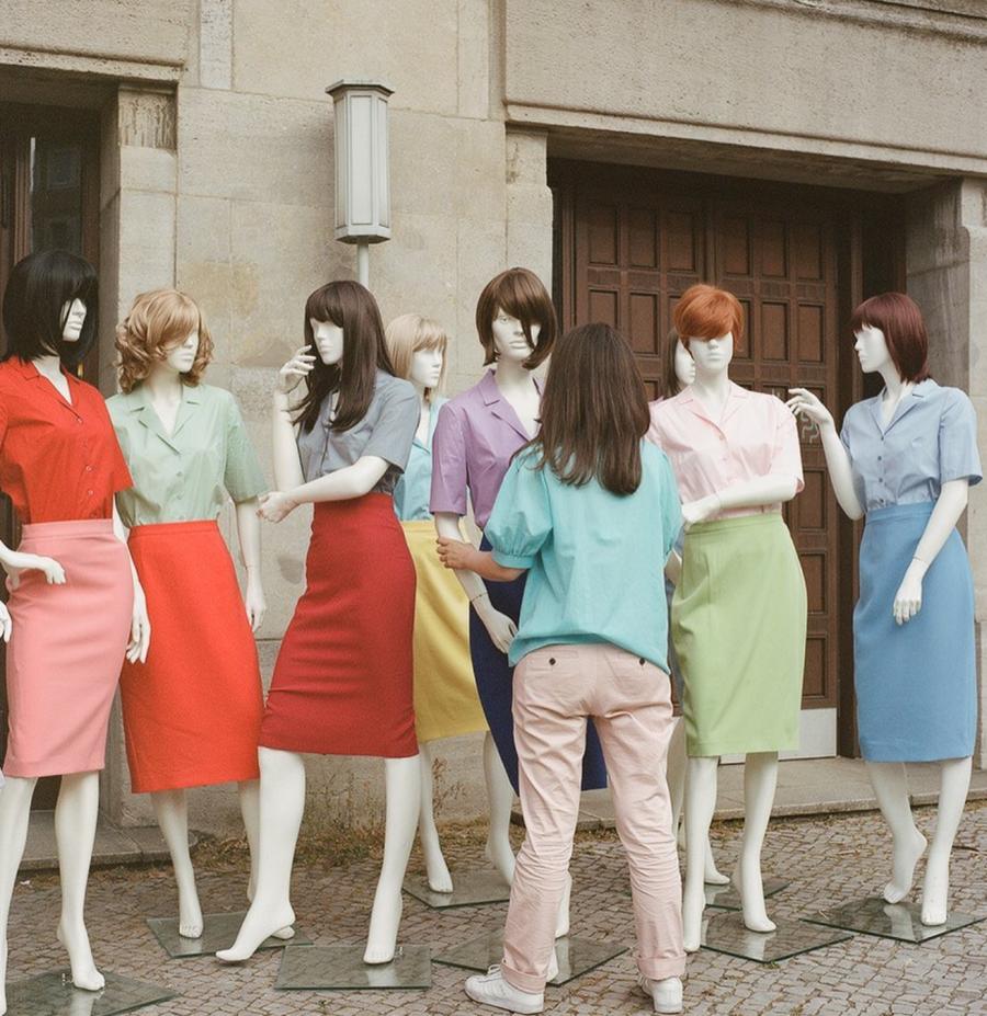 For the exhibition at the Kunstverein, the project was developed into a mixed media installation including photographs, mannequins, costumes, prints, performances, as well as a newly produced 16mm film. The film starts from existing footage from the shooting of the titular photograph and the opening performance at the exhibition Heart Beat Detection Systems in Bucharest 2022. From there it expands into a wider reflection on ideas of social equality, gender representation and the role of the high heel as a symbolic instrument of subversion.