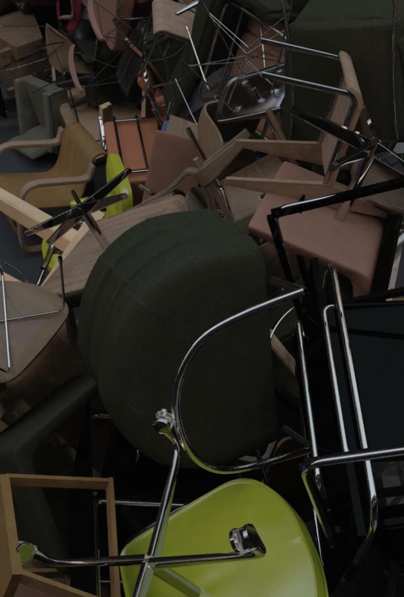 A diptych of films sets up a dialogue in nationalmuseum, a spatial and tonal conversation that pervades the other works. Their sequential construction sees different scenes move between and across the two films. Each scene appears as a material configuration: from a divergent fragmentation, an unfolding act of dislocation, to a rupture that triggers a reclassification of place.