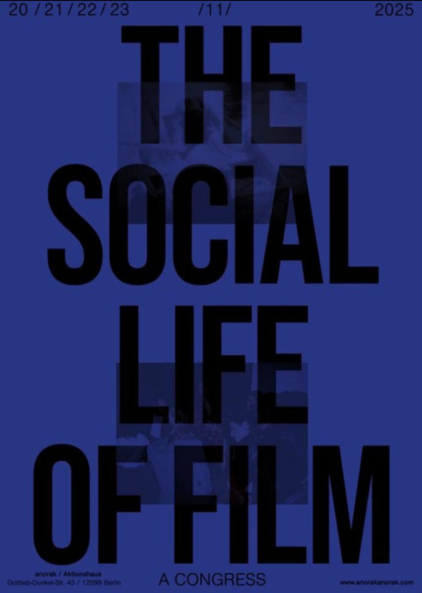 The third edition of THE SOCIAL LIFE OF FILM takes place from 20–23 November 2025 in Berlin, hosted by anorak, carrick bell, and Kristofer Woods.