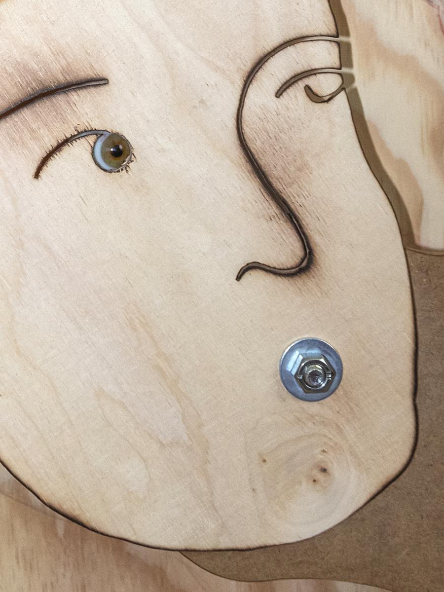 A jumping-jack suspended in mid-air within the theatrical space of a display case. His weak-willed limbs are floating graciously, hands empty, a heart-shaped hinge screwed over his mouth: a dumb puppet, a lovefool, or worse – a people-pleaser? Tobias Koenig’s guileless wooden man conflates the Victorian toy with the silhouette of a minnesinger, evoking a medieval stereotype of love and masculinity. Meanwhile, a dreamscape-like background, rendered in the colour palette of bruised skin, depicts the labour of love and care as a quite different experience. In pitting a raw form of devotion against its culturally rehearsed performances, “Those Irrevocable Words” envisions love beyond power relations.
