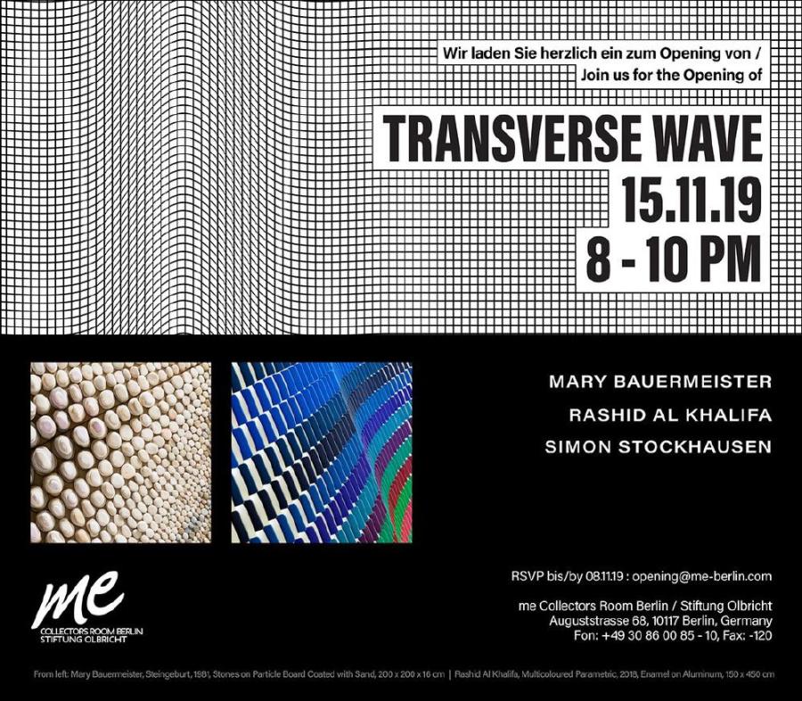 ‘Transverse Wave’ brings Mary Bauermeister and Rashid Al Khalifa together with the sound designer Simon Stockhausen, opening on 16 November 2019 in the me Collectors Room Berlin / Olbricht Foundation.