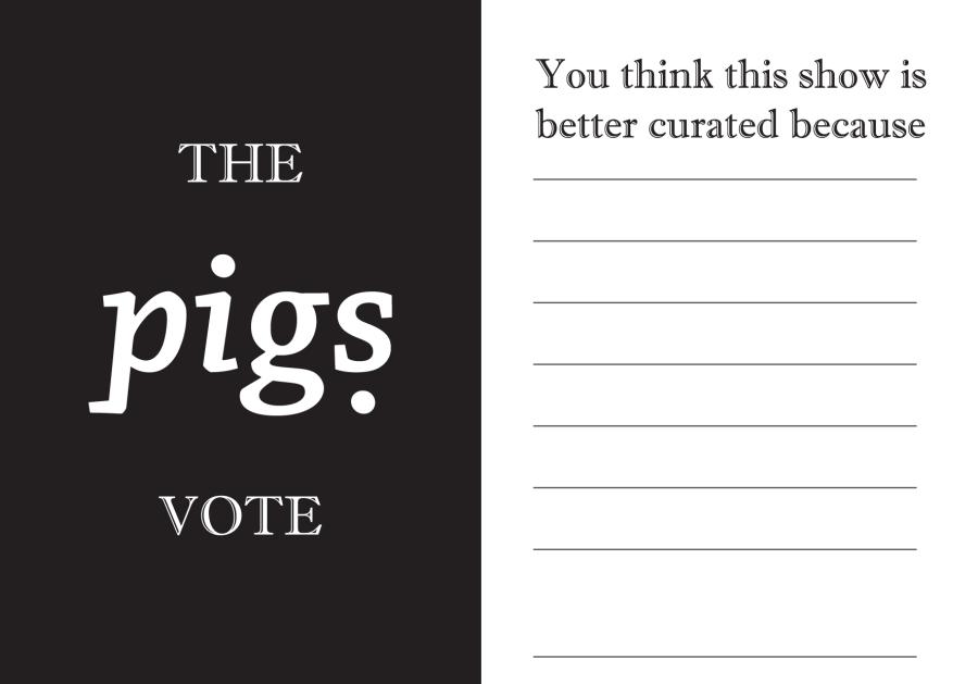 On Saturday 19. March the Curator's Battle took place at the Grimmuseum. Two curators, two shows, the same 8 artists. Both curators created a show with all 8 artists, they chose at title, formed a concept, wrote a curatorial text and gave instructions for set up. Both shows were inaugurated at the same time anonymously. "Stronger Magic" vs "Choreographed Coincidence", tagged the Black vs the White show. Throughout the opening visitors had a chance to vote on which show they considered "better curated", we also asked them to write down the reason why. Here is what they said. For the purpose of this documentation we chose to ommit which show each vote reffers too. But yeah, the winner was Chan, ok. It was Chan.