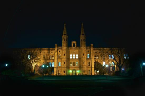 The central deaconess institute ‚Bethanien‘ was constructed during the years 1845-47, commissioned by the pious King Friedrich Wilhelm IV who was known as the ‚romantic of the Prussian throne‘. In 1843 he reintroduced the Society of Our Lady (Order of Swan) that his forefather, Kurfürst Friedrich II of Brandenburg had founded four hundred years previously. One of his tasks was to construct an institute for educating nurses and carers „which, as a model for other similar institutions, would be affiliated with a home for the sick.“ Persius came up with the first designs for the deaconess institute which included 500 beds, a training school for the sisters and an orphanage. Following Persius‘ death, his colleague Stein took over construction management under the direction of Stüler, a student of Schinkel. Following Stein‘s revised plans, a wide horseshoe shaped complex was created in a short period of time, the bulky main core of which was surmounted by two slim 35 metre high towers. When, in accordance with his instructions, the house was handed over for use in October 1847, it lay just inside of the city border in the midst of gardens and rye fields. Just 50 years on, around the turn of the century, Bethanien and the park designed by Lénne were embedded within a dense city structure. The population of Berlin had multiplied almost five-fold, going from 365,000 up to 1.700,00. The hospital was in use until 1970.