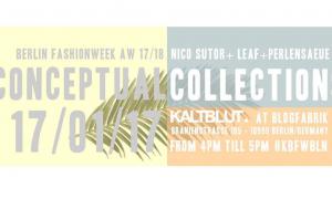 Conceptual Collections by Nico Sutor-Leaf-PerlensäueKALTBLUT Magazine and Blogfabrik presenting CONCEPTUAL COLLECTIONS by NICO SUTOR – LEAF – PERLENSÄUE during Berlin Fashion Week AW17/18. Doors open... | 17 Jan-17 Jan | read more |