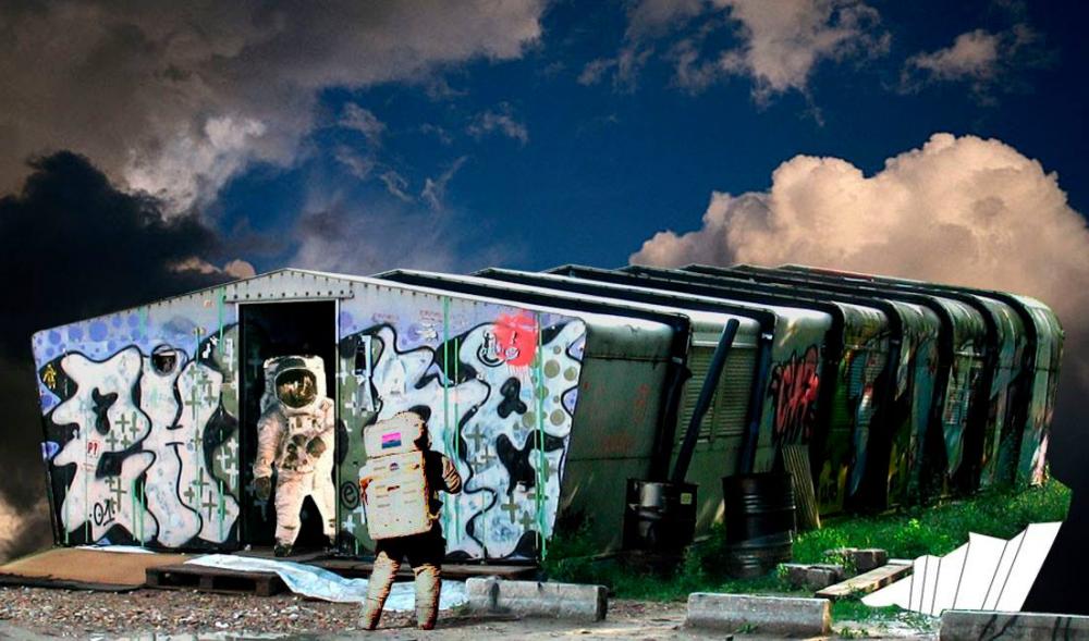 The Raumerweiterungshalle (spatial-extension-container) of the non-profit association Selbstuniversität e.V., is a self-organized space for non-commercial projects and events, such as film evenings, performances, readings, concerts, seminars, discussions, exhibitions, and workshops, with a queer-feminist focus.